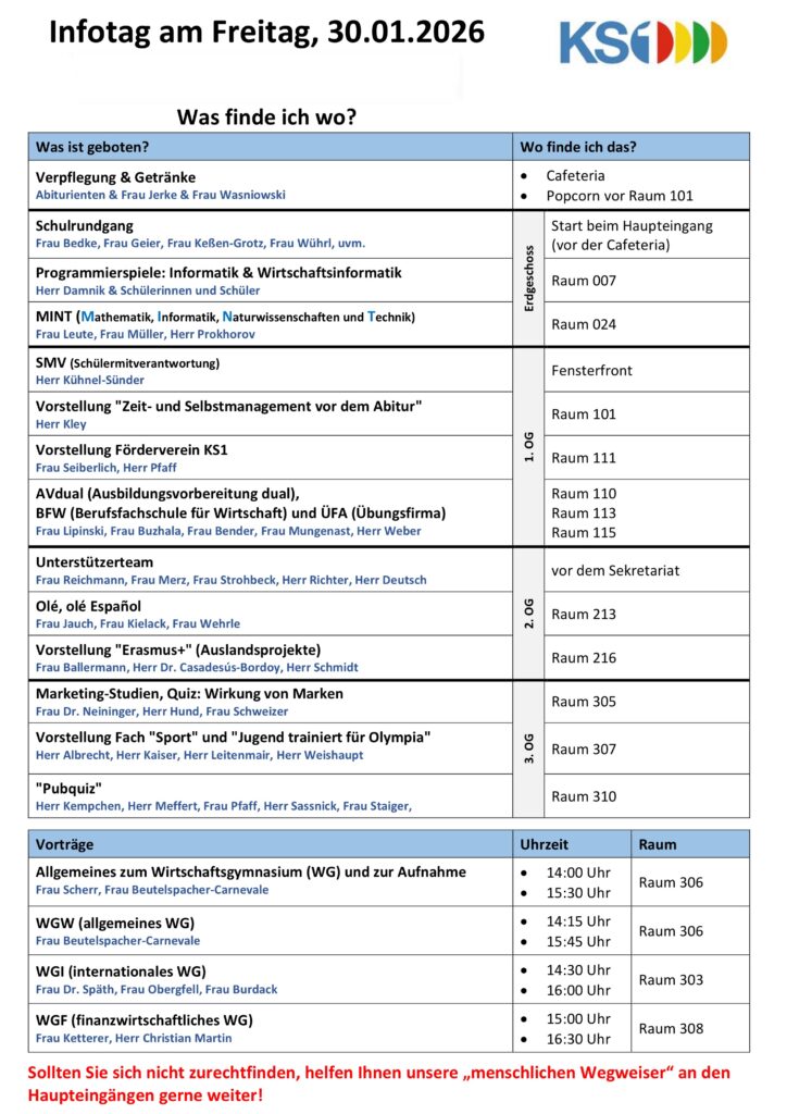 Wir möchten Sie einladen, sich ein bisschen Zeit zu nehmen, um die Arbeit und den Arbeitsplatz von 950 Schülerinnen und Schülern*, über 60 Lehrerinnen und Lehrern und 3 Sekretärinnen kennen zu lernen. Informieren Sie sich über die KS 1 mit Hilfe unseres zielgruppenorientierten Wegweisers. Wir helfen mit, junge Menschen in der kaufmännischen Bildung und Ausbildung zu qualifizieren. Der Landkreis Schwarzwald-Baar benötigt gut ausgebildete Fachkräfte. Wir bieten eine engagierte Lehrerschaft, die unsere Schüler:innen in diesen wichtigen Lebensjahren begleiten und fördern will.