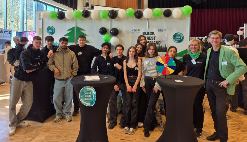 Am 12.03.2026 nahm unsere Übungsfirma Black Forest Wonderland gemeinsam mit Herrn Weber und Frau Horn an der Übungsfirmenmesse in der Stadthalle Singen teil. Die Messe bot eine breite Palette an Produkten anderer Übungsfirmen und beeindruckte durch kreative Messestände.