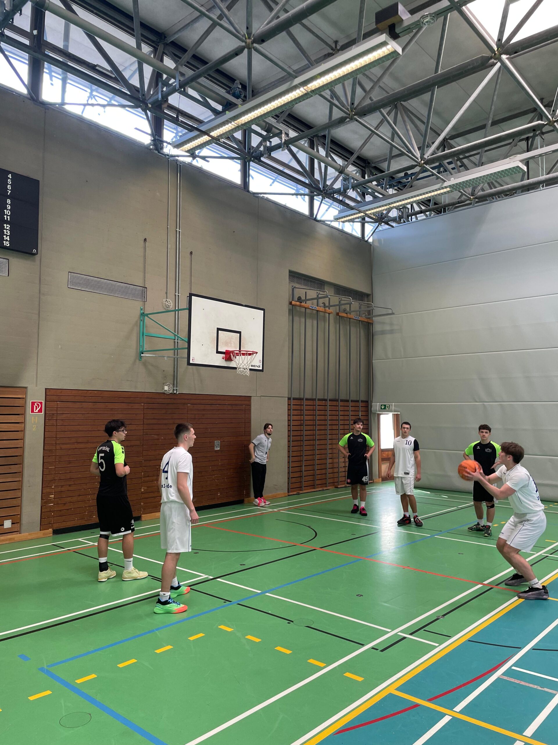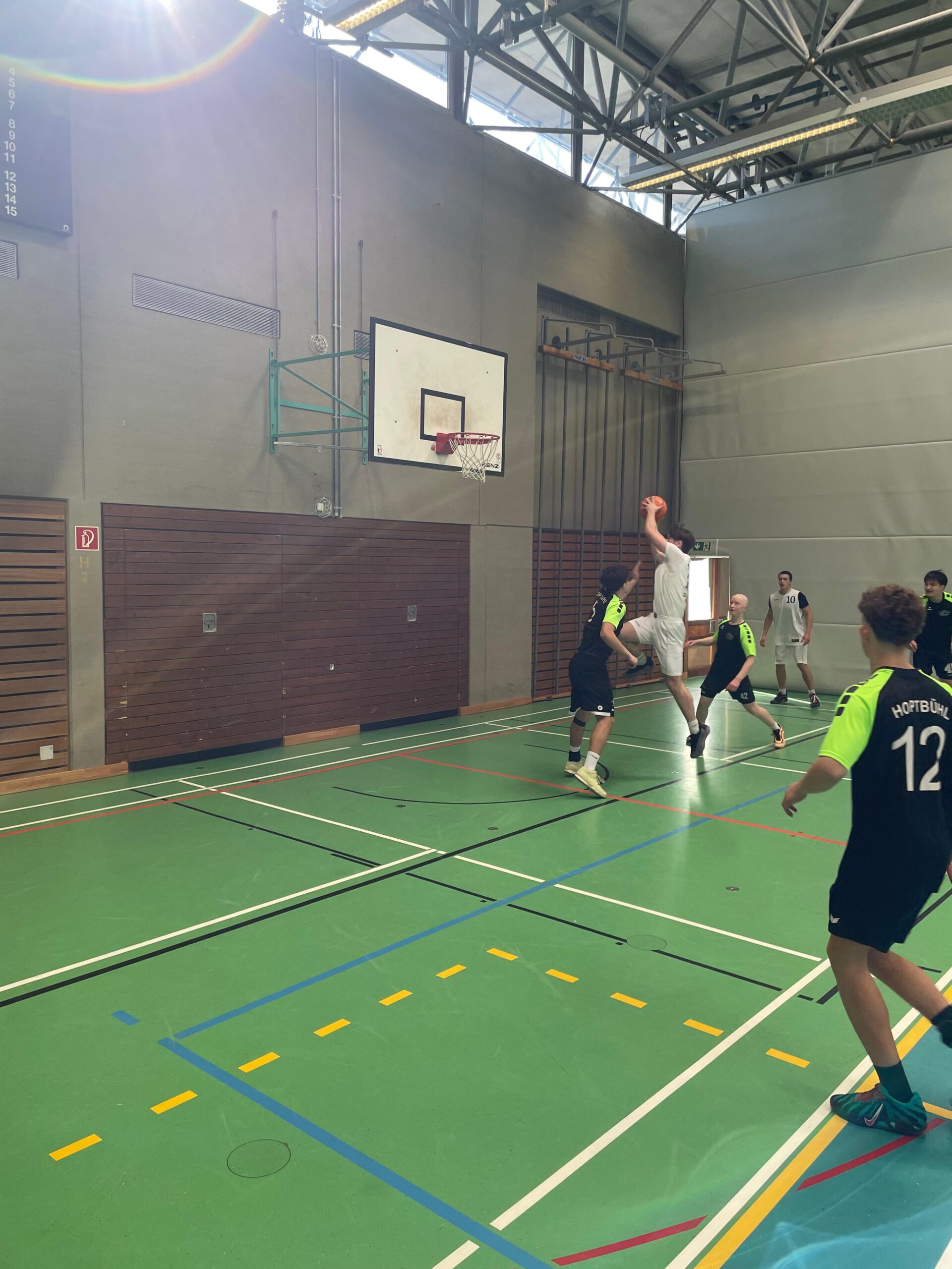 Das abschließende Spiel gegen das Hoptbühl-Gymnasium war gleichzeitig das direkte Duell um den Turniersieg. Nach einem furiosen Beginn ließen zu Beginn der zweiten Halbzeit – auch aufgrund des kleinen Kaders – die Kräfte etwas nach. Durch Nachlässigkeiten in der Defensive konnte der Gegner zwischenzeitlich auf wenige Punkte verkürzen.
